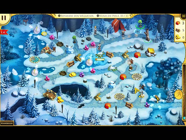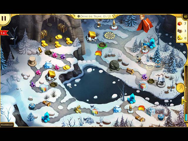 - Untersuche Deine Umgebung und friere Seen ein, um sie zu überqueren!