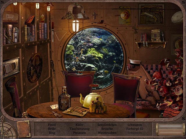 Professor Pierre Aronnax, sein Assistent Conseil und Ned Land wurden von Kapitän Nemo gefangen genommen, der die Weltmeere in seinem berühmten Schiff Nautilus unsicher macht. Obwohl sie stark beeindruckt sind von dem Schiff, hoffen Deine drei Freunde, zu entkommen und trockenen Boden unter ihren Füßen zu spüren. Hilf ihnen bei der Flucht in „20.000 Meilen unter dem Meer“, einem packendem Wimmelbildspiel. - 20.000 Meilen unter dem Meer