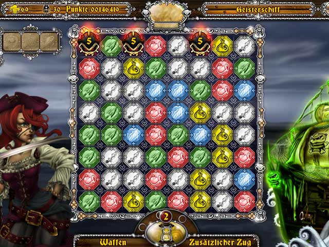 Werde zum König der Piraten und übernimm die Macht in der Karibik! Überquere die gefährlichen Meere und kämpfe Dich in diesem fesselnden 3-Gewinnt-Spiel bis an die Spitze! Erfülle Aufgaben, vergrößere Dein Arsenal und sammle mächtige Artefakte während Du die karibischen Inseln in verschiedenen Spielmodi erforschst. In „The Adventures of Mary Ann: Lucky Pirates“! bekämpfst Du gefährliche Piraten und unheimliche Wasserkreaturen, wie riesengroße Kraken. - The Adventures of Mary Ann: Lucky Pirates