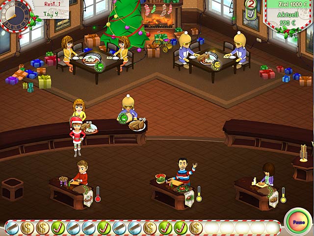 Feiere die Feiertage mit Amelie! Dekoriere drei weihnachtliche Cafés, bereite beliebte Köstlichkeiten für Deine Gäste zu und verdiene genug Geld, um den Schlitten des Weihnachtsmannes zu füllen! Mit einfachem, aber herausfordernden Spielspaß, schönen weihnachtlichen Grafiken und drei Gegen-die-Zeit-Modi, die es zu meistern gilt, ist „Amelies Restaurant: Das Weihnachtswunder“ genau das Richtige für die Weihnachtszeit! - Amelie's Restaurant: Das Weihnachtswunder
