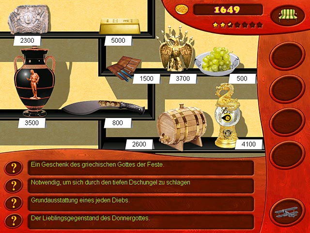 In „Antique Shop“ ist es an Dir, Antiquitätengeschäfte auf der ganzen Welt zu eröffnen und genug Geld zu verdienen, um eine archäologische Expedition nach Griechenland zu finanzieren. Kaufe neue Antiquitäten, um sie zu veräußern und verbessere die Ausstattung Deiner Geschäfte, um das Einkaufserlebnis zu steigern. Plane Deine Einkäufe genau, um in diesem schnellen Gegen-die-Zeit Spiel möglichst große Profite zu erzielen! - Antique Shop