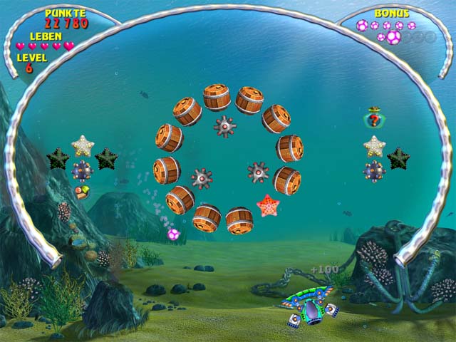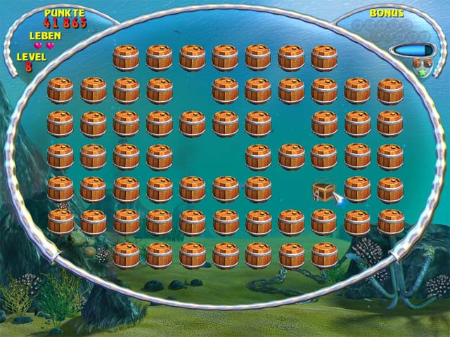Beginne Deine Reise und stelle Dich den Herausforderungen der 150 Levels von Aquaball. Es gibt so viele Wunder zu entdecken und so viele Elemente der Szenerie wegzuschießen: Feuere Deinen Ball kraftvoll auf die Elemente ab, um sie zu zerstören und wüte wie ein Wirbelsturm, indem Du die vielen Power-ups, die Du fangen kannst, zu beherrschen lernst! Mehrfach-Bälle, verheerende Waffen, Bonuszonen: Diesem Breakout voller Überraschungen fehlt es an nichts! - Aquaball