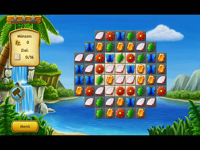 Matche in einer exotischen Umgebung, in der Fortsetzung von Artifact Quest. Reise auf eine tropische Insel und hilf Deinem alten Freund, sein Dorf wieder zu errichten. Finde antike Artefakte auf einer unglaublichen 3-Gewinnt-Reise. - Artifact Quest 2
