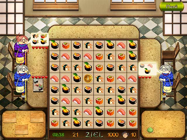 Hilf Asami dabei, ihre Familientradition fortzuführen und eine Meisterin der Sushiherstellung zu werden. Folge den Rezepten ihres Großvaters, um die unterschiedlichsten Kunden des kleinen Sushirestaurants satt und zufrieden zu machen. Nutze in „Asami’s Sushi Shop“ Deine 3-Gewinnt und Gegen-die-Zeit Fähigkeiten, um genug Geld und Trinkgeld zu verdienen, um Dein Sushi Restaurant stetig verbessern zu können. Wirst Du die Kunst der Sushiherstellung meistern? - Asami's Sushi Shop