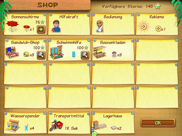 Triff die Strandschönheit Maria und geniesse die Sommersonne! Verdiene Geld, indem Du Deinen sonnenverwöhnten Kunden jeden Wunsch von den Augen abliest. Serviere ihnen Essen und Getränke, und kümmere Dich zusätzlich um den Souvenirladen. Bediene in Beach Party Craze 10 verschiedene gebräunte Kunden-Typen und löse sieben Minispiele. Lass Dich in 50 Levels voller Calypso-Rhythmen vom Beach Party Craze anstecken! - Beach Party Craze