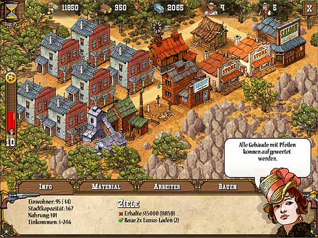 Zähme den Wilden Westen Amerikas! Sammle notwendige Ressourcen, um Gebäude zu errichten und Deine Stadt zu vergrößern. Verbessere die Infrastruktur der Stadt, damit Leute sich in der Stadt niederlassen möchten und verteidige Dich gehen gefährliche Banditen in diesem spannungsgeladenen Strategiespiel. Erlebe stundenlangen Spielespaß im Wilden Westen! - Big Bang West