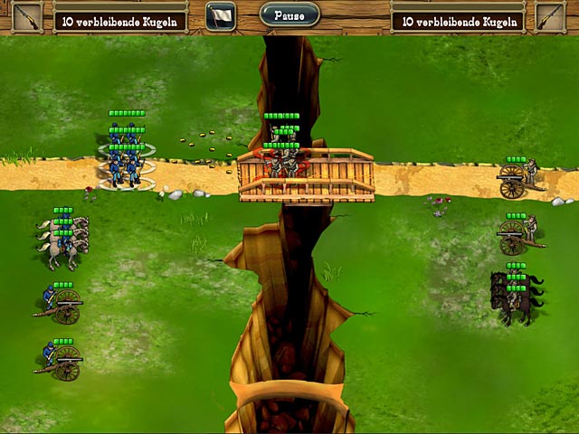 Schlüpfe in dem Strategie-Spiel „Die Blauen Boys: North vs South“ in die Rolle der Nord- oder der Südstaatler und kämpfe im Amerikanischen Bürgerkrieg gegen Deinen gewählten Feind! Führe entweder die Nordstaatler oder die Konföderierten an. Dein Ziel ist es, das amerikanische Territorium zu bezwingen, Staaten einzunehmen, feindliche Forts und Züge anzugreifen und Deine Bahnstrecken zu verteidigen. Nimm den Hafen ein, um die Verstärkungen aus Europa vor dem Landgang zu hindern. Hüte Dich vor Stürmen, Banditen und Angriffen. Stelle Dich heute dieser einzigartigen Herausforderung und kämpfe in Echtzeit gegen Deine Feinde. Kannst Du den Kampf für Dich entscheiden? - Die Blauen Boys: North vs South