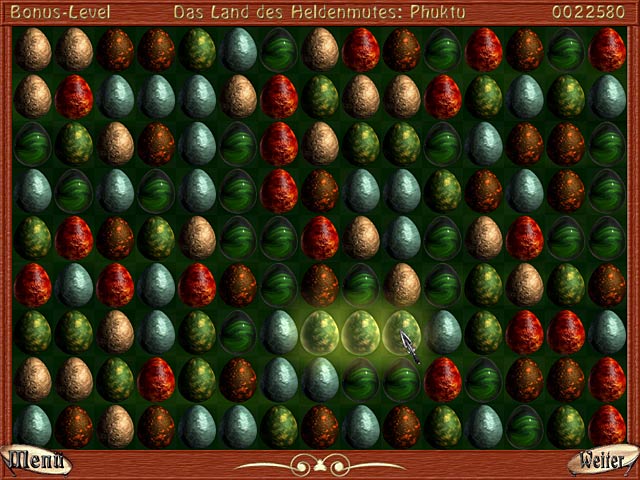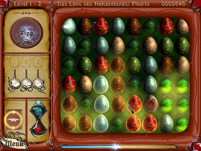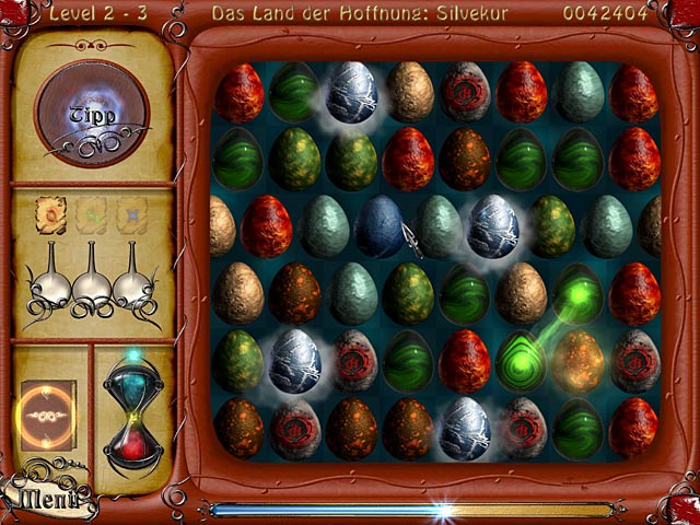 Das 3-Gewinnt-Spiel „The Book of Wanderer: The Story of Dragons“ nimmt Dich mit auf eine magische Reise durch das Land der Drachen! Du musst mindestens drei gleichfarbige Dracheneier in einer Reihe miteinander kombinieren, indem Du die Spalten oder Reihen verschiebst. Wenn Du gleichfarbige Eier zerstörst, entsperrst Du mächtige Zaubersprüche und verschiedene Power-Ups. Erlebe aufregende Abenteuer auf Deinem Weg durch das Land der Drachen und erspiele tolle Hintergründe für Deinen Computer-Desktop! - The Book of Wanderer: The Story of Dragons