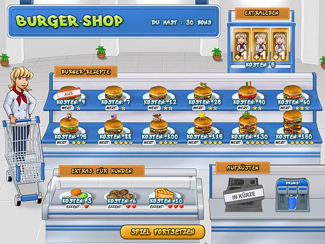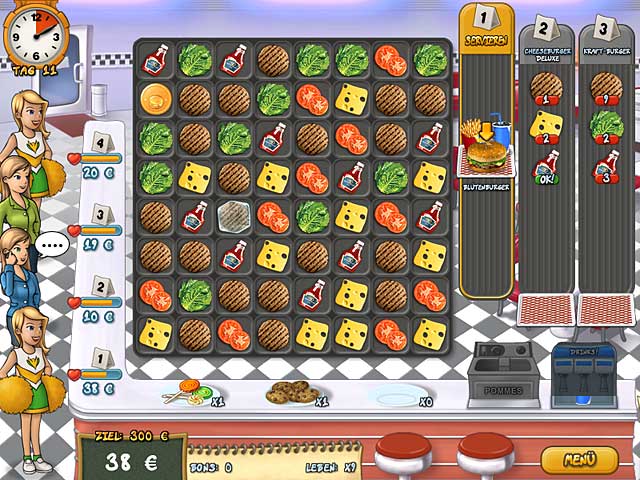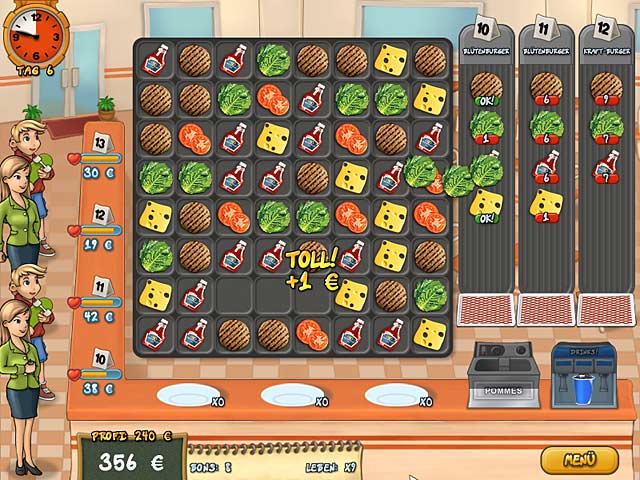Hilf der ehrgeizigen Köchin Heidi dabei, ihr eigenes Burgerrestaurant zu leiten und Kunden mit köstlichen Burgern zu verwöhnen! Heidi ist davon überzeugt, dass Burger, genau wie zarte Filets, zur feinen Küche gehören. Stelle die notwendigen Beilagen wie Käse und Tomaten zusammen, um Deine Hamburger zu perfektionieren. Nimm die Bestellungen Deiner sonderbaren Kunden auf und achte stets darauf, dass Dein Restaurant auf dem neusten Stand ist. Umsorge in diesem spaßigem Gegen-die-Zeit Spiel „Burger Rush“ Deine Kunden, indem Du Dir stets neue Rezepte überlegst und die Wartezeit auf ihre Bestellung mit kleinen Leckereien verkürzt. - Burger Rush