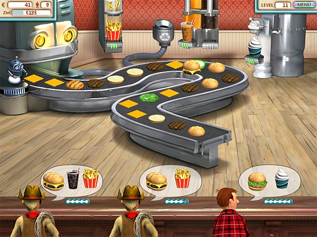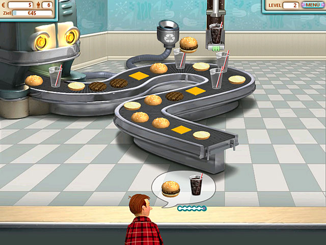 Nachdem Du rätselhafte Blaupausen von Entwürfen erhalten hast, beginnst Du mit der Konstruktion eines merkwürdigen Apparats zur Herstellung von Essen, und eröffnest ein Restaurant. Nimm Bestellungen auf, bereite die Mahlzeiten zu, und bediene eine Vielzahl von Kunden, bis Du herausfindest, was wirklich hinter den rätselhaften Entwürfen steckt. „Burger Shop“ ist ein unterhaltsames Gegen-die-Zeit-Spiel und bietet mit unterschiedlichen Spielmodi etwas für jeden Geschmack! Wähle unter „Story-, Entspannter-, oder Herausfordernder-Modus“ Deinen Favoriten aus! - Burger Shop