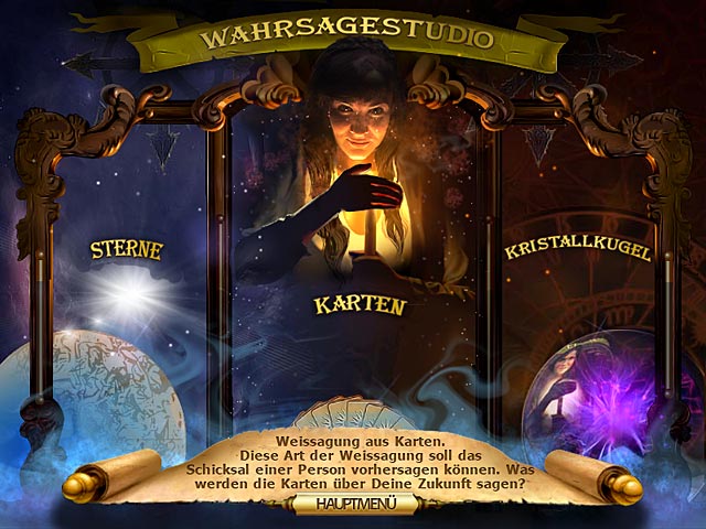 In „Cassandras Abenteuer: Das Vermächtnis von Nostradamus“ schlüpfst Du in die Rolle der Cassandra, einer jungen Wahrsagerin, die mit Hilfe eines magischen Ringes komplizierte Kriminalfälle aufklärt. Als sie diesen Ring eines Tages verliert, ist sie auf Deine Hilfe angewiesen. Es liegt nun an Dir, mit Hilfe von Nostradamus und einzigartigen magischen Tricks und Wahrsagungen, den verlorenen Ring zu finden und das uralte Geheimnis von Cassandras Familie aufzudecken! - Cassandras Abenteuer: Das Vermächtnis von Nostradamus