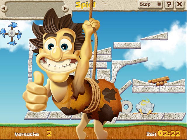 Mit Keule und Köpfchen: Löse die steinzeitlichen Physik-Rätsel und gib so dem gegnerischen Höhlenmenschen eins auf die Mütze. Nutze dazu die vorgegebenen Formen und Elemente, um ein steinernes Rad an seinen Bestimmungsort zu befördern. Verwende weniger Objekte als vorgegeben, um höhere Punktestände zu erzielen. Trophähen erhältst Du für das Erfüllen zusätzlicher Herausforderungen im Spiel. Mach Dich auf in die Steinzeit! - Caveman Physics