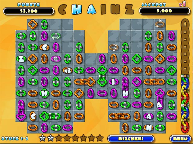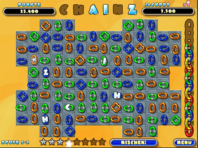 "Chainz 2: Relinked" ist die Fortsetzung des bekannten Geschicklichkeitsspiels in dem es darum geht, richtig sortierte Ketten zu erstellen. Für Abwechslung sorgt ein normaler Modus, das Spiel gegen die Uhr, tolle Grafiken, wertvolle Bonus-Kettenglieder und verspielte Geräuscheffekte und wunderbare Hintergrundmusik! Klicken Sie hier, das zauberhafte Original zu spielen! - Chainz 2 Relinked