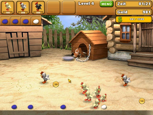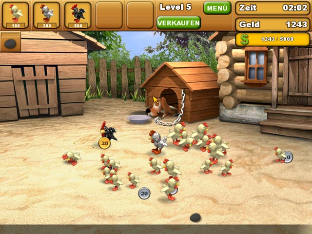 Chicken Chase - Rette den Bauernhof Deiner Grosseltern indem Du auf die Hühner aufpasst und sie versorgst. Bestehe zahlreiche Abenteuer und verdiene genug Geld, um den Bauernhof zu reparieren. In Chicken Chase behütest Du die Eier, passt auf die Küken auf und verjagst die Raben. Such Dir viele Power-Ups aus, und werfe das schwer verdiente Geld nicht aus dem Fenster raus. Die Hühner brauchen dringend Deine Hilfe in Chicken Chase! - Chicken Chase