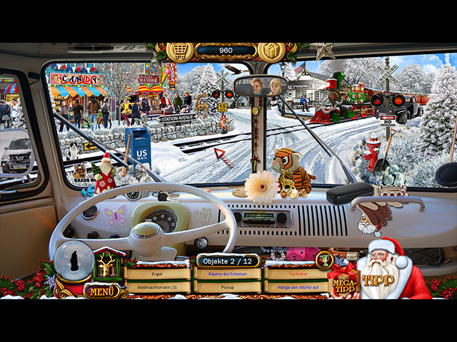 Weihnachten ohne das Weihnachtswunderland ist nur halb so schön! Ein märchenhaftes Wimmelbildspiel, voller Geschenke und versteckter Überraschung. Löse Minispiele und entdecke festliche Weihnachtsgrafiken. Schlafen die Kinder schon, oder sind Sie zu aufgeregt vor dem großen Tag? Ein magisches Weihnachtswunder für die ganze Familie! Reise mit dem Schnellzug des Weihnachtsmanns, besuche seine Wekstatt, den Stall der Rentiere und die Höhle des Weihnachtsmanns. Bestaune das Weihnachtskrippenspiel in der Springfield Mall. Stelle den Weihnachtsbaum auf und dekoriere ihn. Finde Engel und Rentiere und sammle Auszeichnungen und Prämien. - Weihnachtswunderland 9
