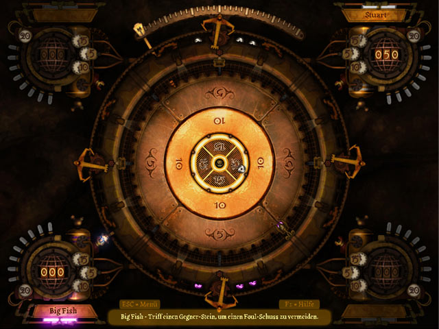Erlebe in dem Arcade- und Action-Spiel „Clockwork Crokinole“ das Spiel Crokinole auf dem Computer! Positioniere Deine Spielsteine geschickt, um die meisten Punkte zu erzielen! Versuche gleichzeitig, die Steine Deines Gegners vom Spielfeld zu entfernen. Erreiche einen Höchstpunktestand im immer schwieriger werdenden Arcade-Modus oder spiele im klassischen Modus. kannst Du zuerst die meisten Punkte erreichen? Finde es jetzt heraus! - Clockwork Crokinole