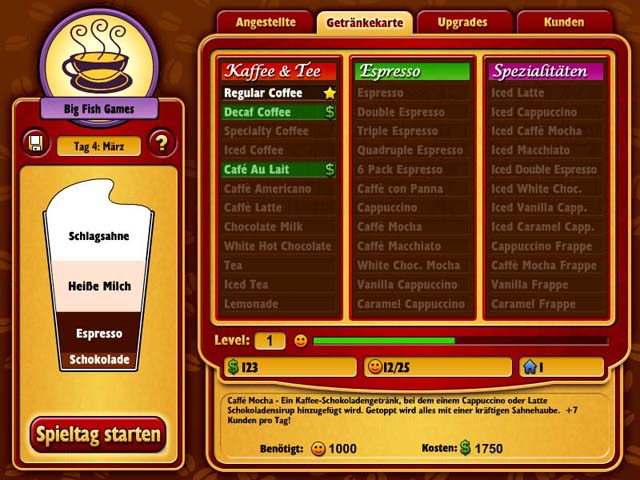 Coffee Tycoon:- 5 verschiedenen Coffee-Shop-Typen.