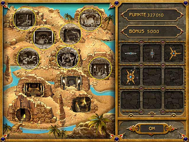 Plumeboom, der Pfau von Orniland, hat eine uralte Schatzkarte gefunden. Die Schätze befinden sich in Höhlen, die von hunderten von magnetischen Schlössern gesichert sind. Nun liegt es an Dir, Plumeboom zu helfen, diese Schlösser zu öffnen. Schiesse farbige Kugeln auf das Spielfeld und lasse Dich von den naturgetreuen physikalischen Effekten im Spiel faszinieren! Wenn Du drei gleichfarbige Kugeln angeordnet sind, explodieren diese. Je mehr Kugeln Du auf einmal explodieren lässt, desto höher ist Deine Punktezahl. Das Schloss öffnet sich, wenn keine Kugeln mehr übrig sind. Kannst Du Plumeboom auf seiner Schatzsuche unterstützen? - Der Goldene Weg von Plumeboom