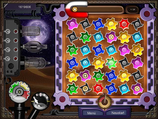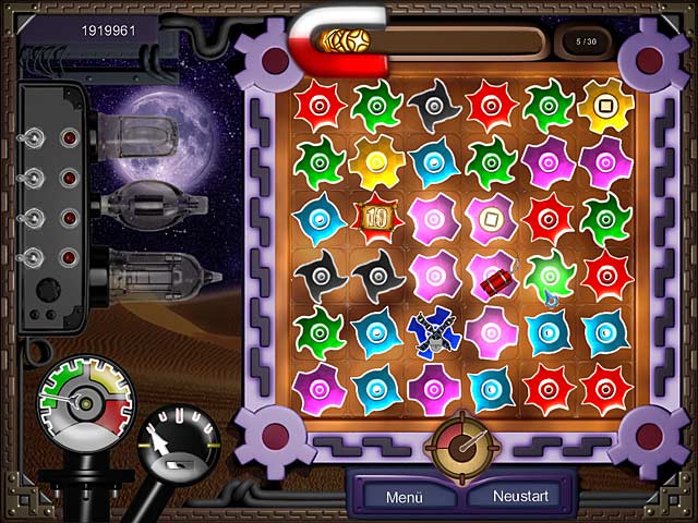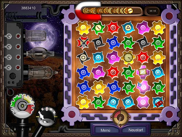 „Engineering - Das Geheimnis der antiken Uhr“ ist ein fesselndes 3-Gewinnt-Spiel, in dem Du die Geheimnisse eines antiken Chronographen aufdecken musst. Hier bewegst Du ganze Reihen, nicht einzelne Spielsteine, und kannst tolle Trophäen für erledigte Sonderaufgaben erspielen! Dein Ziel in jedem Level ist es, die Teile der Uhr zu sammeln, die Du für die Reparatur des Chronographen benötigst. Aber beeil Dich, die Zeit läuft ab! - Engineering: Das Geheimnis der antiken Uhr