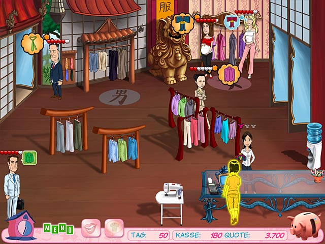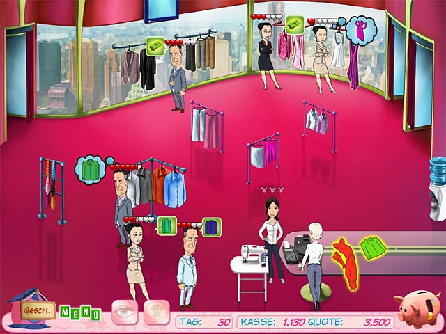 In „Fashion Boutique“ musst Du einer aufstrebenden Designerin dabei helfen, eine Reihe schlecht laufender Läden vor dem Ruin zu bewahren. Verkaufe den Kunden die unterschiedlichsten Kleidungsstücke, indem Du ihnen Komplimente machst und die richtigen Outfits aussuchst. Arbeite in einer Vielzahl von Läden in den Metropolen der USA. Setze Dein Verkaufstalent ein, um die Umsätze zu steigern. - Fashion Boutique