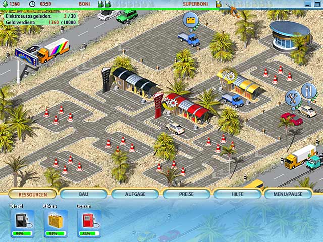 Du hast von Deiner Familie eine alte, heruntergekommene Tankstelle geerbt und musst diese nun in eine topmoderne Service-Station verwandeln! Reisse Teile der Gebäude ab, verbessere, was zu verbessern ist, und errichte neue Gebäude, um in diesem fantastischen Gegen-die-Zeit-Spiel Deinem Ziel ein Stück näher zu kommen. Um Deinen Kunden den besten Rundum-Service zu bieten, musst Du lernen, Inspektionen durchzuführen und Autos zu reparieren! Wirst Du es schaffen, in „Fill Up!“ für den besten Service ausgezeichnet zu werden? - Fill Up!