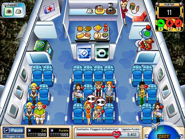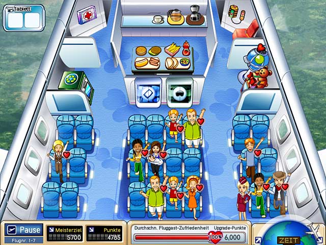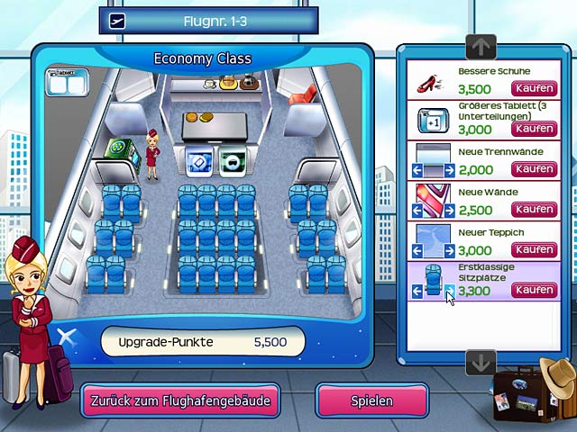 Starlink Airlines hat Konkurs angemeldet und Claire hat dadurch ihren Job verloren. Der neue Besitzer von Starlink Airlines möchte sich mit bestem Service zurück an die Spitze der Fluggesellschaften arbeiten und bietet Claire einen Job als Flugbegleiterin an. Sie ist ein bisschen eingerostet und braucht jetzt Deine Hilfe, um wieder in Schwung zu kommen. Nutze in First Class Flurry Deine Gegen-die-Zeit Fähigkeiten, um die Passagiere an Bord glücklich zu machen und werde zur Star-Flugbegleiterin! - First Class Flurry