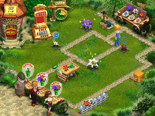 Flower Shop - Big City Break - Kannst Du Meg helfen ihren kleinen Blumen-Laden wieder auf Vordermann zu bringen? Sorge dafuer, dass die Kunden gluecklich bleiben und das Geld hereinkommt. Wirf ein Auge auf die suessen Schmetterlinge und die laestigen Kaefer. Der Kunde ist Koenig! Viel Spass bei diesem einzigartigen Abenteuer! - Flower Shop - Big City Break