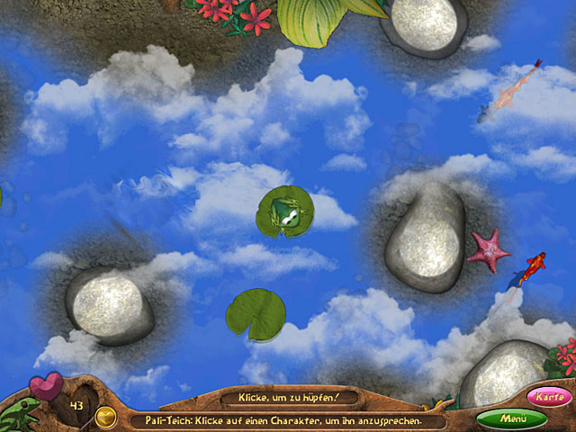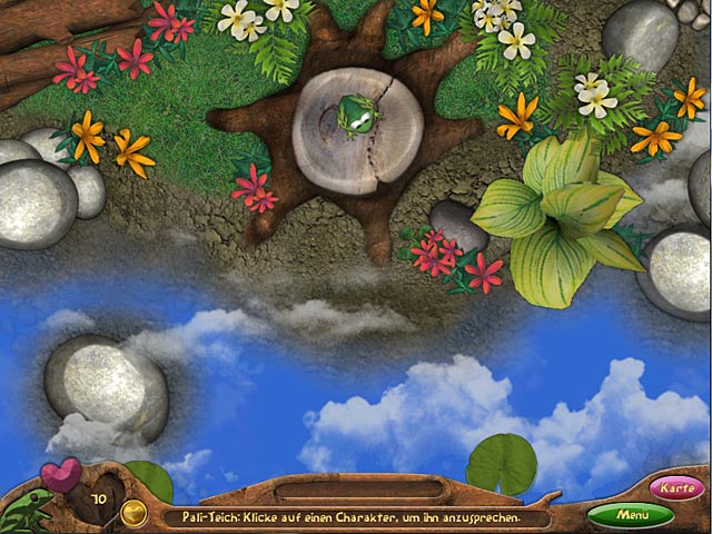 Gewinne das Herz von Jasmine, der Froschprinzessin Deiner Träume, indem Du in herausfordernden Minispielen Münzen verdienst. Hüpfe von Teich zu Teich auf Deiner Reise zum berühmten Blumenfest. Finde unterwegs neue Freunde, die Dir bei Deinem Abenteuer zur Seite stehen und Dich mit aufregenden und unterhaltsamen Minispielen herausfordern. Wimmelbildszenen, Denksport, Memory und sogar Tanzspiele - „Frogs in Love“ bietet etwas für jeden Geschmack! - Frogs in Love