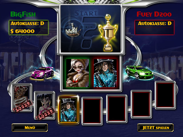 Schnall’ Dich an für dieses rasant-wilde, actiongeladene Nachtleben, mit Deiner heissen Spielfigur und Deinem Knaller-Rennwagen. Fahre durch vornehme Städte und sammele Chips ein, um Deine Geschwindigkeit zu erhöhen. Du stehst auf etwas mehr Aufregung? Sammle vier gleiche Chips in Reihenfolge, um einen Extra-Move zu erhalten. Gewinne heißbegehrte Pokale für Geschwindigkeit und Können, in Fury Race, einem 3-Gewinnt Mega Hit. - Fury Race