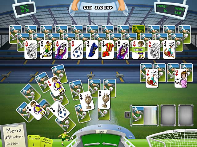 Der beliebteste Sport der Welt sorgt für Kurzweil. Führe Dein Team zum Sieg, in diesem temporeichen Kartenspiel! Reihe Pass-Combos aneinander, während Du versuchst, in diesem spaßigen Spiel das Siegtor zu schießen. Bist Du bereit, gegen Mannschaften wie Brasilien, England, Spanien und die USA anzutreten? Dann leg Dich ins Zeug und und greif mit "FUSSBALL WM Solitaire" nach dem WM-Titel! - Fussball WM Solitaire