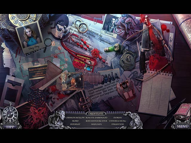 Elephant Games präsentiert die neuste Fortsetzung der Grim Tales-Serie! Du wurdest beauftragt, das Verschwinden einer Schülerin vom örtlichen Internat zu erkunden. Als letztes wurde sie mit dem mysteriösen Dorian Black gesehen. Was als einfache Untersuchung beginnt, erfährt eine dunkle Wende, als Du der dunklen Magie von Crimson Hollow zum Opfer fällst. Kannst Du das verschwundene Mädchen retten, bevor es zu spät ist, oder wirst Du gegen die dunklen Mächte verlieren? Finde es heraus, in diesem unheimlichen Wimmelbildabenteuer! - Grim Tales: Crimson Hollow