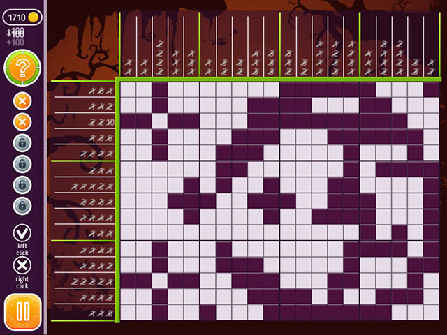 Halloweenrätsel: Nonogramme ist ein Logikspiel mit schaurig fröhlichem Halloweenthema! Gruselige Geschichten, Monster, Hexen, Halloweenkürbisse und 120 neue Nonogramme ... Ideal, um sich nach einem langen Tag zu entspannen! Ist das nicht, was jeder Puzzle-Fan wirklich will? Rate nie wieder eine Lösung! Mit der verbesserten Anleitung kannst Du ein Trainingslevel auswählen, je nach Lust und Laune. Vervollständige nur das Training, das Du wirklich brauchst. Erkunde Dein intellektuelles Potenzial! Genieße eine fröhliche Halloweenatmosphäre mit klassischen Nonogrammen! - Halloweenrätsel: Nonogramme