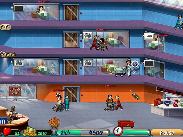 Hilf Krankenschwester Sally schnellstmöglich ihre Patienten in „Hospital Haste“, einem mitreißenden Gegen-die-Zeit-Spiel, zu untersuchen, zu behandeln und zu heilen. Jeder Patient hat eine andere Persönlichkeit, also höre Dir ihre Beschwerden genau an! Entdecke verschiedene Krankheiten und schicke alle Kranken wieder gesund nach Hause. Verwandle das heruntergekommene Krankenhaus in ein modernes, medizinisches Wunder, indem Du verschiedene Geräte aufrüstest. - Hospital Haste