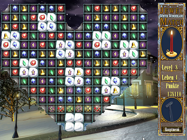 Jewel Match - Winter Wonderland - In über 150 herausfordernden Levels wartet atemberaubender Weihnachtsspaß auf Dich! Bei diesem weihnachtlichen Puzzle-Spiel musst Du schillernden Christbaum-Schmuck aneinander reihen und die Eisflächen, auf denen die Schmuckstücke liegen, zerbrechen. Mehr als 150 Levels werden dich verzaubern und in Festtagsstimmung bringen. Bist du bereits ein Weihnachtsschmuck-Experte? - Jewel Match - Winter Wonderland