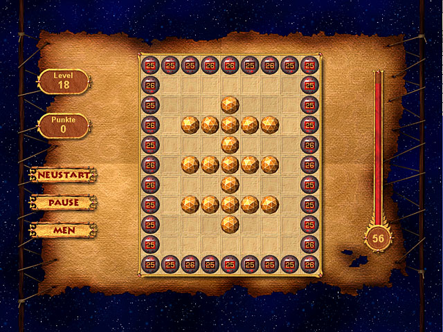 Jumba ist ein sehr pfiffiges Rätsel-Spiel. Begib dich ins Weltall und versuche dieses Abenteuer zu bestehen. Der Sinn des Spiels liegt darin, alle Bälle vom Feld zu entfernen. Ein Ball kann über einen anderen Ball in ein freies Feld springen, damit der übersprungene Ball verschwindet. Wenn nur noch ein Ball übrig ist, hast du das Level erfolgreich beendet. - Jumba