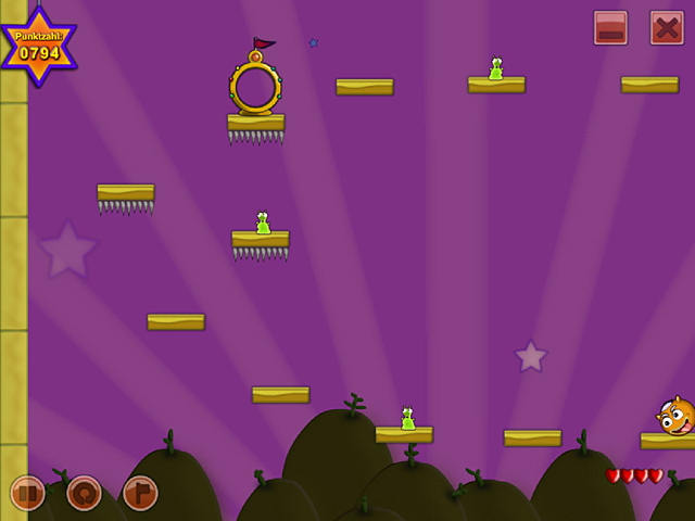 Springe in diesem Arcade-Spiel „Jump, Bobo! Jump!“ durch verschiedene Welten! Triff dabei auf andere interessante Kreaturen. Sammele schmackhafte Leckerbissen und stille Bobo´s Hunger. Plane Deine Sprünge genau, um nicht in Stacheln oder einem Abgrund zu landen. Erreiche wohlbehütet den Ausgang! - Jump, Bobo! Jump!