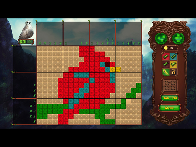 Hilf dabei, einen lang gehegten Traum zu erfüllen! Die kleine Eule träumt von großartigen Dingen und möchte ein Schüler von Merlin werden! Hierzu muss sich die Eule allerdings auf eine gefährliche Reise begeben, um den Zauberer zu überzeugen, sie in seine Schule aufzunehmen! Begleite die kleinen Eule auf dieser Reise und hilf ihr, farbenfrohe Nonogram-Puzzles mit variierenden Schwierigkeitsgraden zu vervollständigen! - Magische Flügel