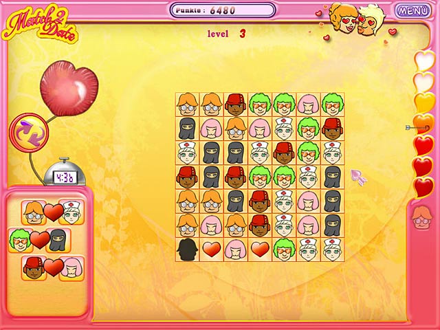 Hilf hunderten jungen Leuten, die perfekte „Bessere Hälfte“ zu finden. Geniesse die Fähigkeit, neue Beziehungen zwischen Menschen zu vermitteln, die viele Gemeinsamkeiten haben. Versuche den perfekten Partner für jeden zu finden, damit Du die erste entscheidende Verabredung planen kannst, die sicher der Beginn einer lebenslangen Liebesgeschichte sein wird! Werde in dem 3-Gewinnt-Abenteuer „Match 2 Date“ zum Experten für Harmonie und Eintracht. - Match 2 Date