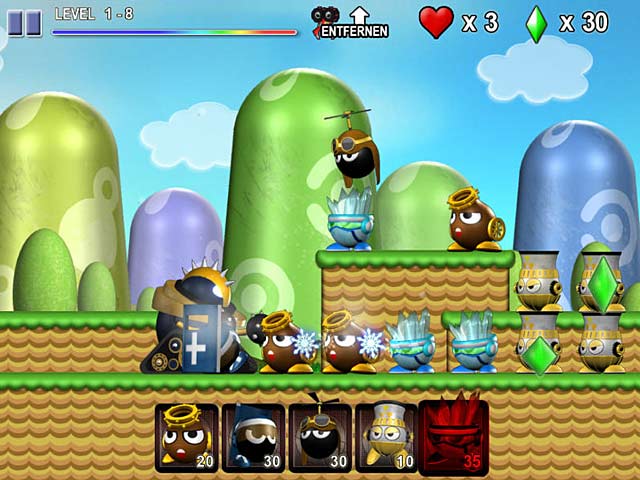 Der Grüne Planet ist in dem mitreißenden Arcade-Spiel „Mini Robot Wars“ die wunderschöne Heimaltwelt kleiner Roboter. Es herrscht Frieden ... Bis plötzlich eine rücksichtslose Armee, die nur unter dem Namen „Die Maschinen“ bekannt ist, angreift und eine Invasion startet! Hilf den Mini-Robotern, sich zu verteidigen, indem Du Energie sammelst und weitere kleine Roboter baust. Stelle Dich dieser Herausforderung mit Köpfchen und rette den wunderschönen Grünen Planeten! - Mini Robot Wars