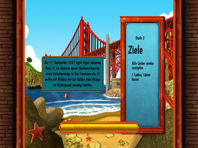 Leite den Bau dieser legendären Brücke, sammle dazu verschiedene Rohstoffe und organisiere ihren Transport und achte darauf, dass eine große Anzahl an Arbeitern auch tatsächlich ihrer Arbeit nachgehen. Es werden viele Herausforderungen auf Dich warten, um dieses Jahrhundert-Bauwerk auch rechtzeitig zu vervollstädigen. Die Einweihung ist für den 27. Mai 1937 geplant und die Einwohner San Fransiscos können es kaum erwarten, ihre neue Brücke endlich nutzen zu können. Schaffst Du es, Dein Projekt rechtzeitig zu beenden? Finde es jetzt heraus! - Monument Builders: Golden Gate Bridge