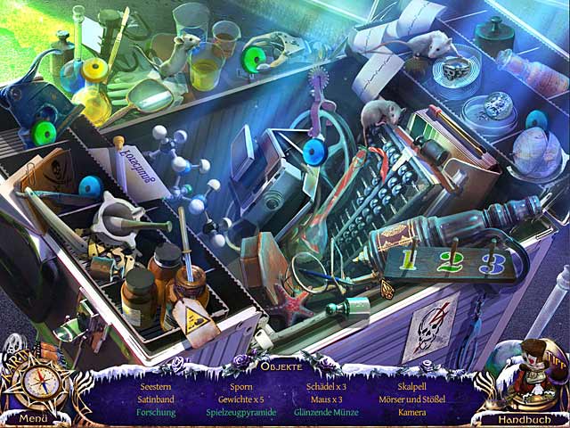 Decke in dem Wimmelbildabenteuer „Mystery Trackers: Die Vier Asse“ eine heimtückische Verschwörung auf! Die Stadt Brightfield wurde nach einer Serie unerklärlicher Tierattacken evakuiert. Nun streifen merkwürdige Kreaturen durch die Straßen. Hinter jeder dunklen Ecke lauern Gefahren und Du landest genau in der Mitte des Geschehens! Als Du die Ereignisse untersuchen willst, entdeckst Du, dass die Angriffe Teil einer ganzen Serie an Verbrechen in der Stadt sind. Diese führen alle auf eine Organisation namens „Vier Asse“ zurück. Aber wer sind die Vier Asse und was haben sie vor? Du und Dein treuer Hund Elf gehen der Sache auf den Grund. Viel Glück, Detective! Du wirst es brauchen. - Mystery Trackers: Die vier Asse