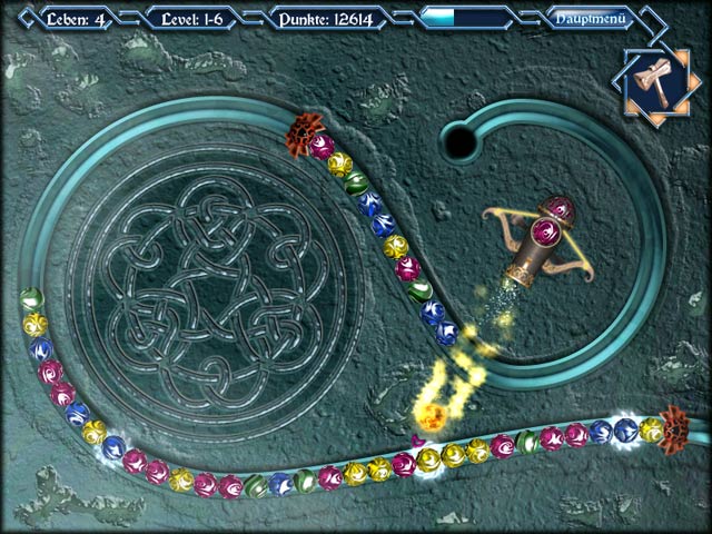 Finde einen Weg, die mythischen Perlen zu meistern! Reise durch die sagenumwobene Tirnagog Region und halte während Deines Abenteuers an, um die Kraft der Perlen unter Kontrolle zu bringen. Tirnanog ist ein enormes Land, aber Du darfst Deinen eigenen Pfad bestimmen. Magische Power-Ups leisten Dir Hilfestellung während der ganzen Reise. Lerne, mystische Hämmer zu handhaben und siehe zu, wie Du die mythischen Perlen besiegst! - Mythic Pearls - The Legend of Tirnanog