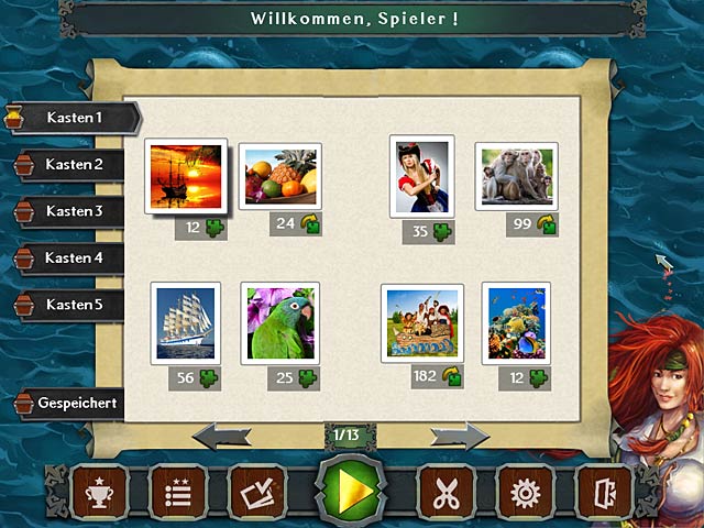 Lass Dich in "Piratenpuzzle" in die romantische Zeit der Abenteuer auf hoher See entführen, zu vergrabenen Schätzen und wundervollen tropischen Inseln! Spanische Galeeren und geheime Piratenverstecke, schwarze Flaggen über azurblauem Meer, Schatzkarten und Seeschlachten, bunte Papageien und die Welt der Karibik – all das und noch viel mehr erwartet Dich in 500 tollen Motiven aus der gefährlichen Welt der Piraten! - Piratenpuzzle