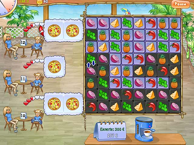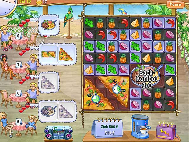 Leite Restaurants in „Pizza Chef 2“ und koche wie ein Profi in diesem rasanten 3-Gewinnt-Spiel! Bediene Kunden und verdiene viel Geld, das Du in Deine Restaurants investieren kannst, damit Dein Unternehmen wächst. Halte Deine Kundschaft bei Laune und erschaffe elegante Restaurants in großen Städten aus Deinen anfangs kleinen Pizzageschäften. Arbeite wieselflink und kreiere die perfekte Pizza! - Pizza Chef 2
