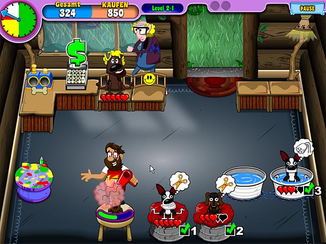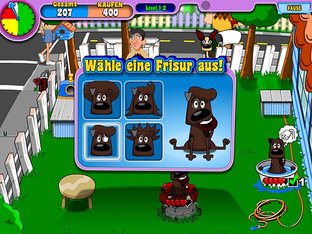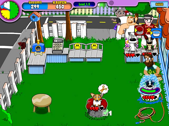 Leite Deinen eigenen Hundesalon und nimm mit Deinen Hunden an Hundeschauen in der Umgebung teil. Wirst Du es schaffen, auch an den großen Schauen teilzunehmen? Hilf Eloise und Roberto dabei, ihren kleinen Hundesalon im Hinterhof zu vergrößern und einen professionellen Salon auf einer tropischen Insel zu eröffnen. Wasche, bürste, schneide, frisiere und färbe Hunde aller Rassen, und hilf den beiden dabei, ihren Lebensunterhalt mit ihrem Hundesalon zu verdienen. Wirst Du in „Puppy Stylin‘“ zum Meister der Hundepflege avancieren? - Puppy Stylin'