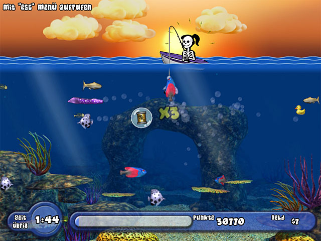 Nachdem Du eine alte Piraten-Schatzkarte in einer Flaschenpost findest, machst Du Dich in „Reel Quest: Die Suche nach dem Piratengold“ auf den Weg, um dieser zu folgen und den Schatz zu suchen. Fange Fische und Juwelen und weiche unfreundlichen Meeresbewohnern, wie Quallen, Haien und Aalen aus. Sammle mehrere Fische der gleichen Art, um Deine Punkte zu vervielfältigen. Sammle spezielle Power-Ups, um ins nächste Level und damit dem Schatz einen Schritt näher zu kommen! - Reel Quest: Die Suche nach dem Piratengold