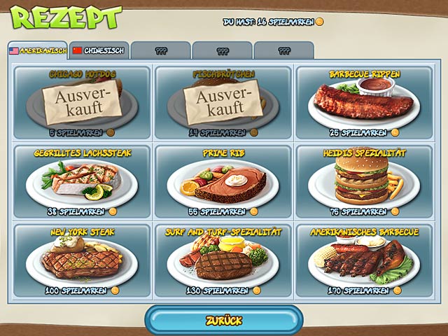 Heidi hat das Ziel, eine berühmte Chefköchin zu werden und ihre eigene Kochschule zu eröffnen. Schnapp Dir Deine Kochschürze und kreiere 50 Gerichte aus aller Welt. Besuch den Wochenmarkt, um frische Zutaten für Gerichte wie Filet Mignon, Dim Sum oder Pizza Marinara zu kaufen, und nutze Deine Jukebox, damit sich Deine Kunden in der Kochschule wie zu Hause fühlen! In Restaurant Rush wird 3-Gewinnt- mit Gegen-die-Zeit Spielen kombiniert, bis Dir das Wasser im Munde zusammen läuft! - Restaurant Rush