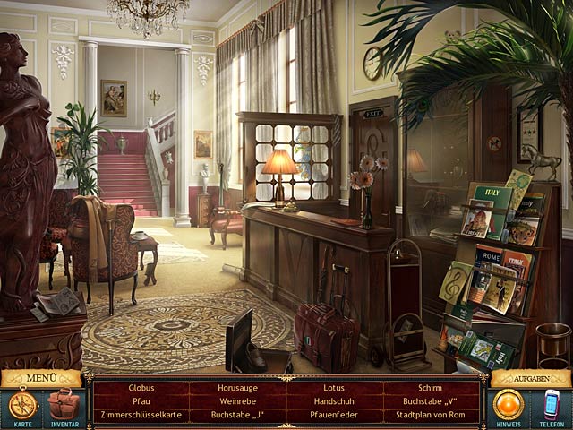 Reise mit Rhianna Ford nach Rom und bestätige die Echtheit eines verschlossenen alten Briefes, der angeblich vom großen Da Vinci selber verfasst wurde. Rhiannas Boss Cornelius Blake hat sie nach Rom bestellt, um diesen aussergewöhnlichen Brief zu untersuchen. Nutze Deine Wimmelbild-Fähigkeiten und hilf Rhianna, das Geheimnis des Briefes zu lösen und ihren Job zu sichern. Erforsche das schöne Italien in „Rhianna Ford und der Brief von Da Vinci“! - Rhianna Ford und der Brief von Da Vinci