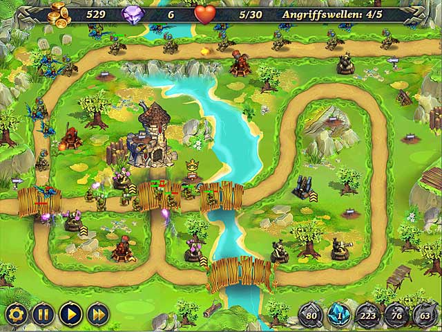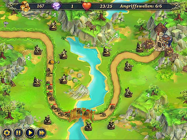 In dem Strategiespiel „Royal Defense“ wird ein Held gesucht: Trollhorden umstellen die Burg! Errichte Türme, spare Geld, lerne Zaubersprüche und halte den Feind fern! Folge der fesselnden Geschichte um den ewigwährenden Kampf des Zwergenreiches gegen die Trolle, die die Zwerge unterjochen und ihr Land beherrschen wollen. Um die Trolle zu besiegen, musst Du Verteidigungstürme errichten und mächtige Zaubersprüche erlernen. Alle Türme haben bestimmte Eigenschaften, die Du mit jedem Level ausbauen kannst. Dir werden somit nie großartige neue Möglichkeiten ausgehen, Dich gegen die Trollhorden zu bewehren! - Royal Defense