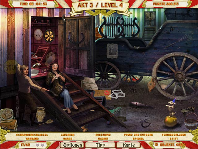 Erlebe in dem herzergreifenden Wimmelbildspiel „Runaway with the Circus“ Frankreich in den dreißiger Jahren und tauche ein in eine unvergessliche Geschichte rund um Liebe, Hoffnung und Entschlossenheit. Mathilde ist vor einer ausbrechenden Epidemie geflohen und findet sich allein und arm vor den Zelten eines Wanderzirkus wieder. Hilf ihr, sich in dem Wanderzirkus zu behaupten, die Karriereleiter emporzusteigen und die Liebe ihres Lebens zu treffen. Wunderschöne Illustrationen, spektakuläre Kostüme und eine großartige Liebesgeschichte werden Dich in die Eleganz und den Stil der dreißiger Jahre zurückversetzen! Worauf wartest Du? Der Zirkus ist in der Stadt! - Runaway With The Circus